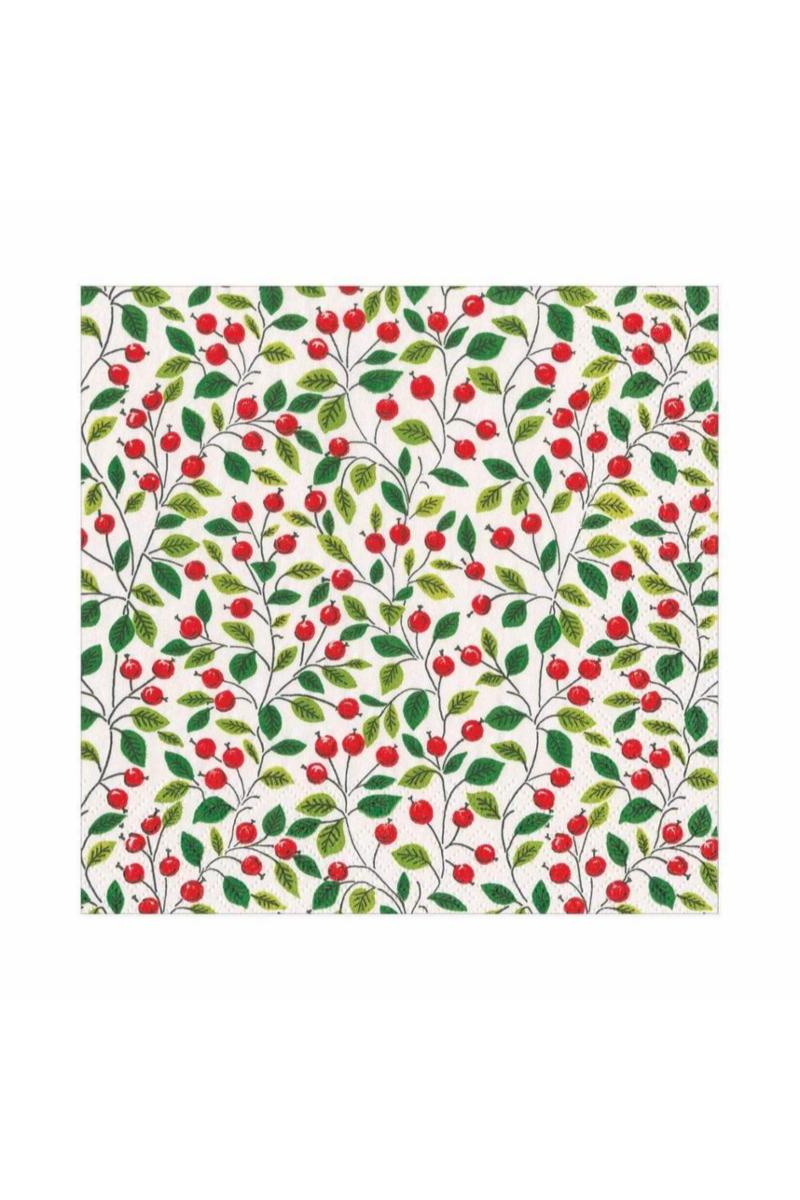 Serviett lunsj Berries & Leaves white