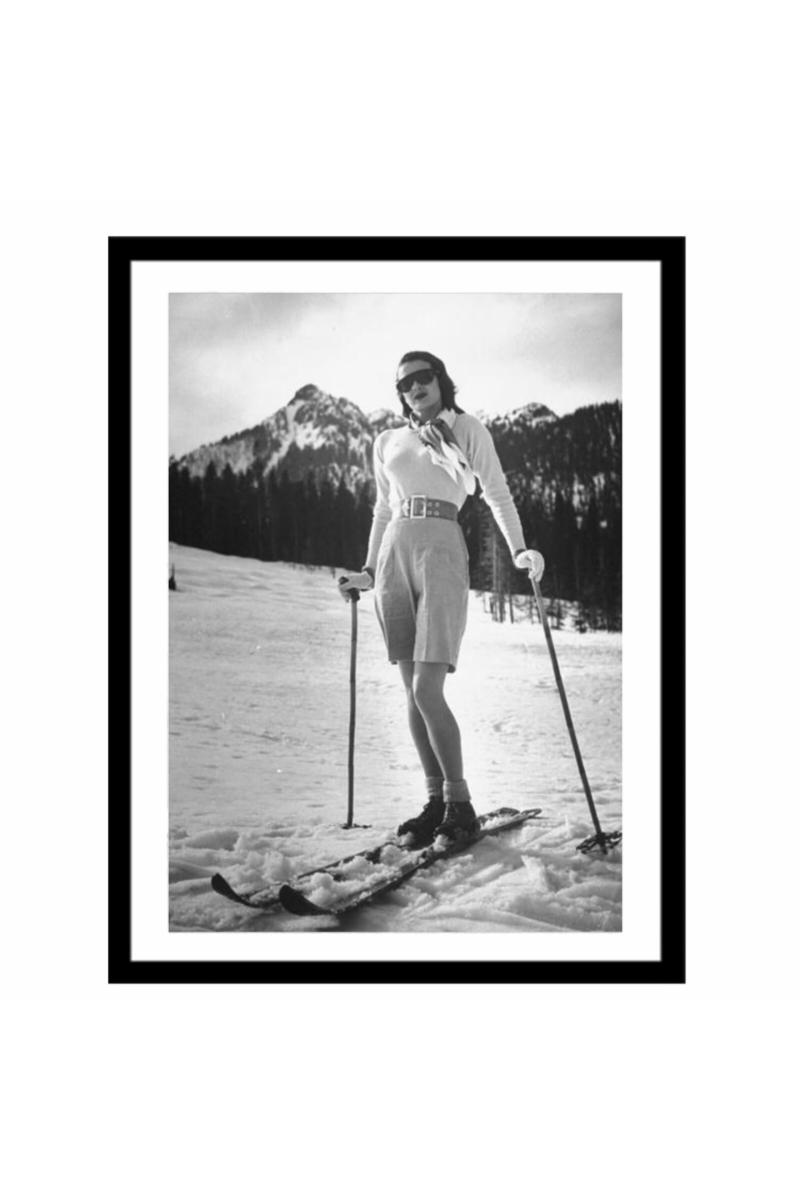 Glass picture w/frame Dame på ski 70cm x 90cm