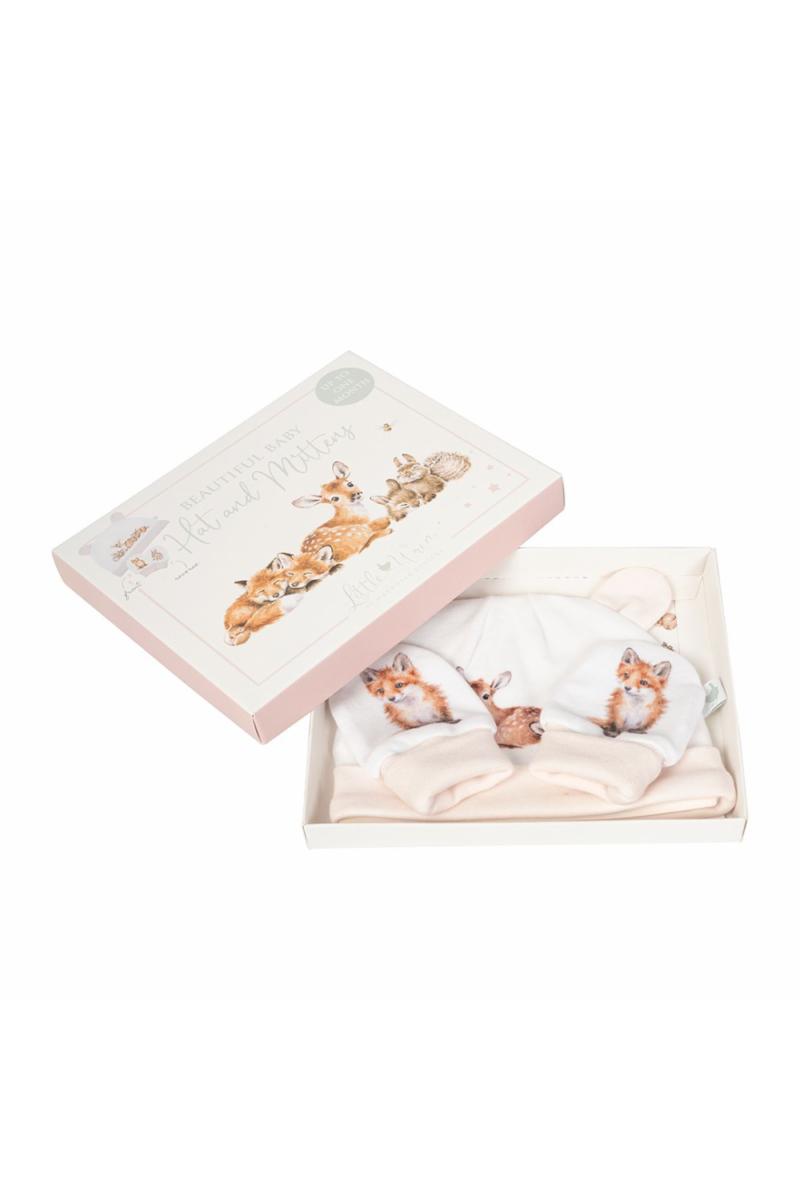 Gaveeske Little Forest votter/lue nyfødt lys rosa