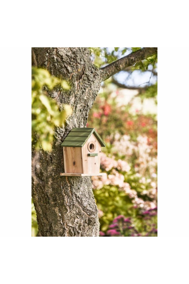 Fuglehus naturfarget m/grønt tak