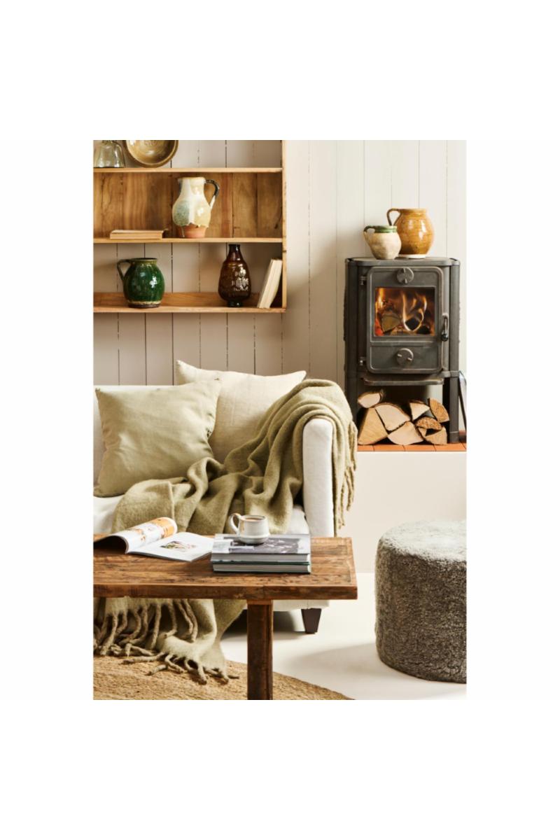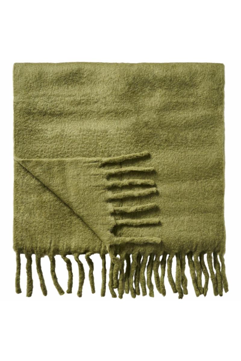 Pledd olivengrønn m/frynser