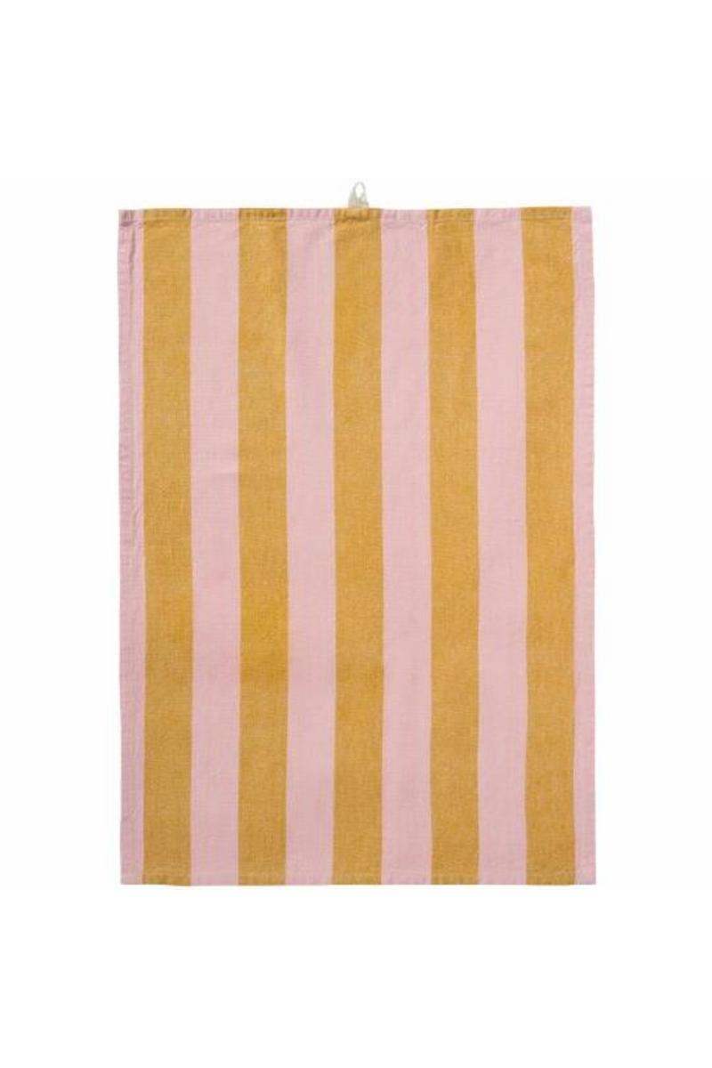 Kjøkkenhåndkle Linus m/mustard og lyserøde brede striper