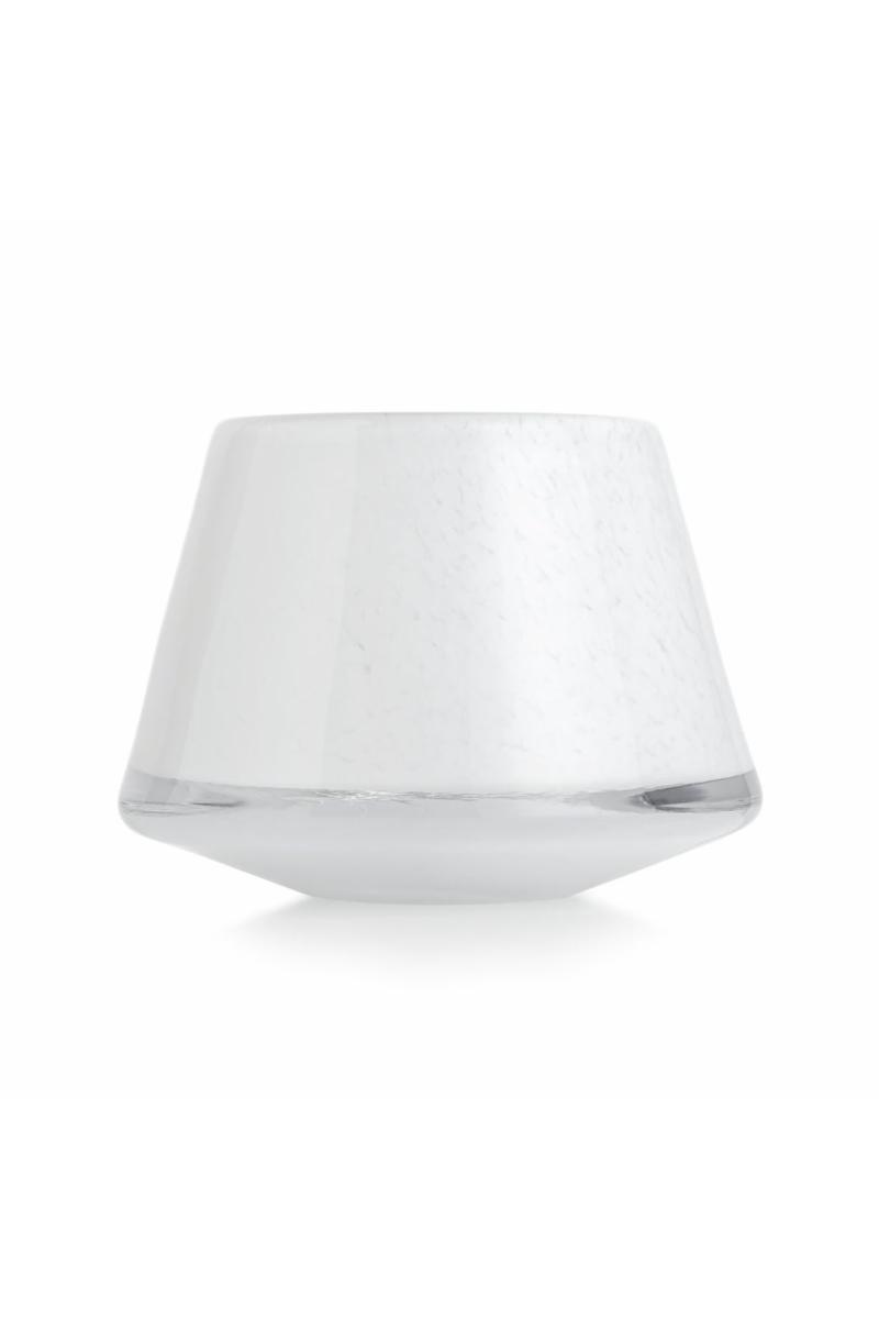 Dugg lyslykt 9 cm i hvitt er munnblåst i gjennomfarget glass og har en myk, avrundet form. Det gjennomfargede hvite glasset gir et dempet og lunt lys når telyset tennes, og fremstår samtidig som et rolig, skulpturelt element på bord eller hylle.