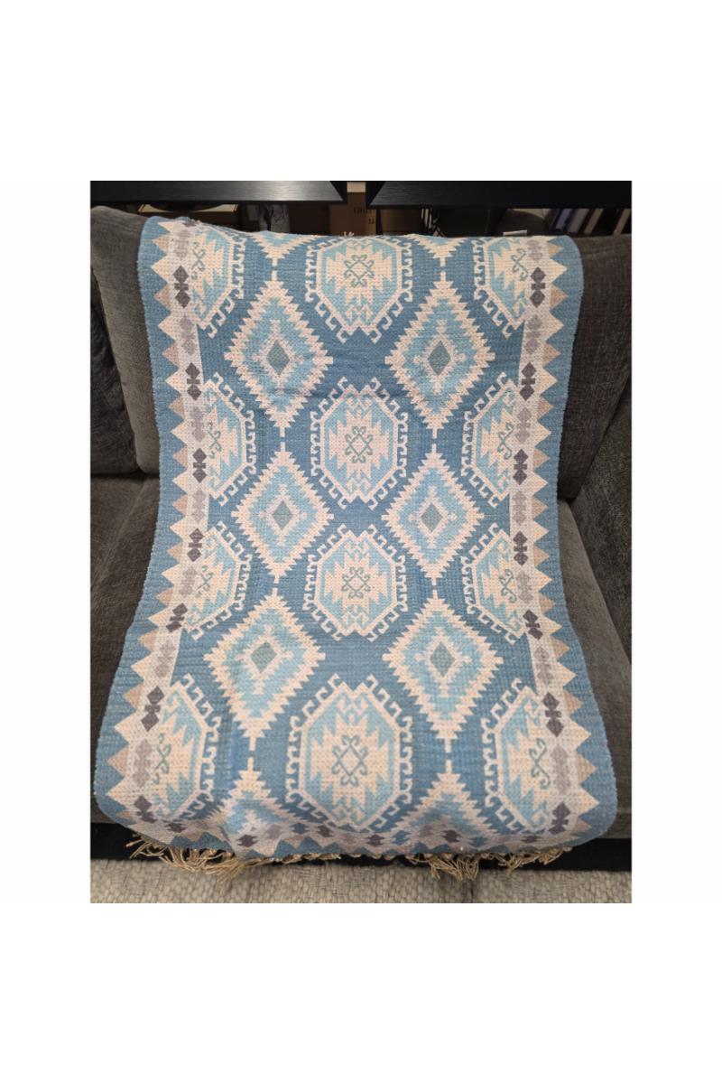 Løper m/frynser Kelim Blå 70x115