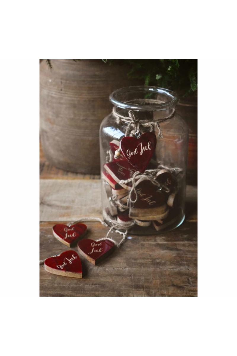 Trehjerte heng rød "God Jul"
