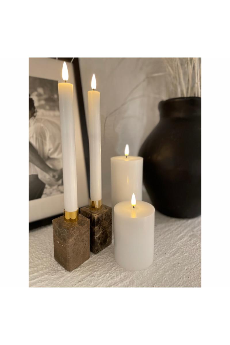 Laget av voks med en "levende" 3D-flamme som blafrer.