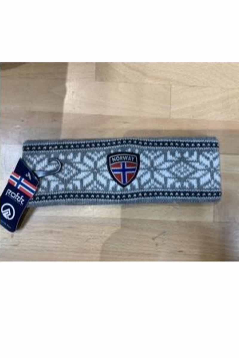 Pannebånd, strikk, lys grå m/hvite stjerner