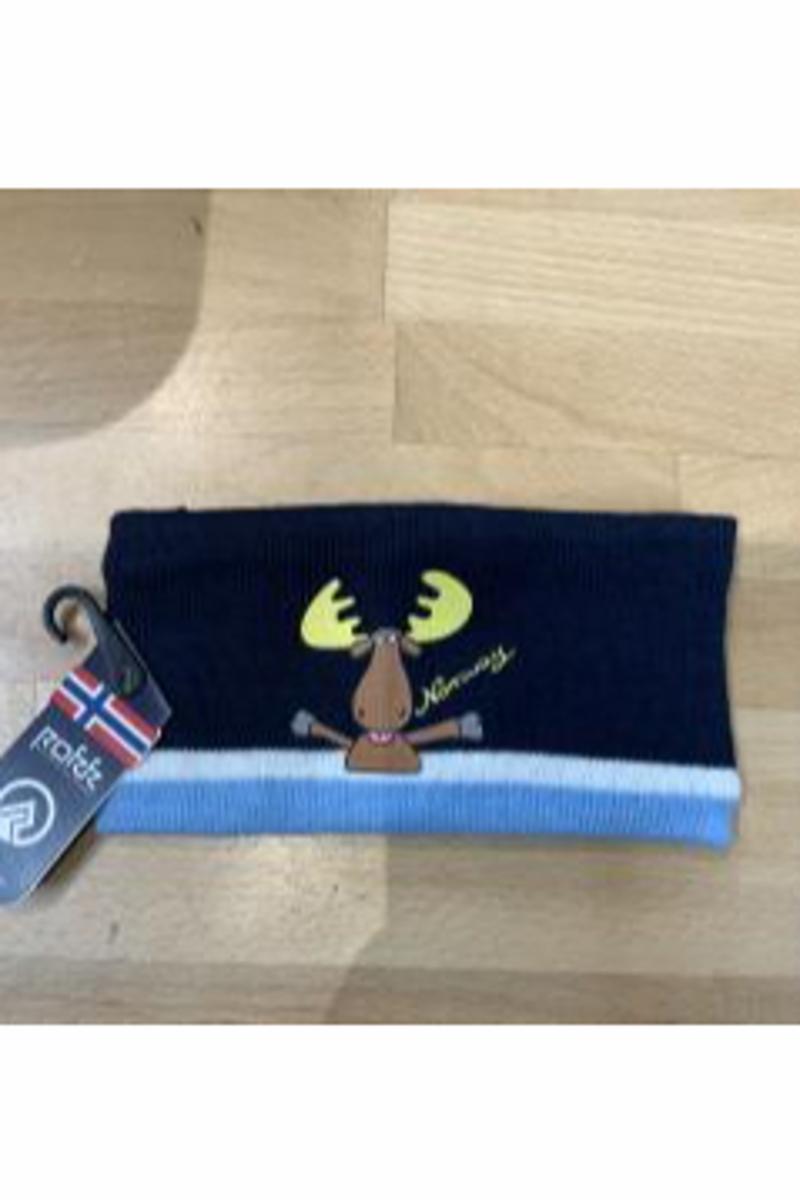 Pannebånd, strikk m/fleece, blå, barn, m/elg