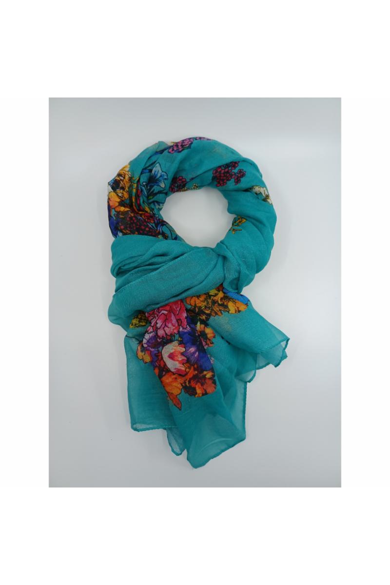 Skjerf, grønn m/blomster (85x180cm)