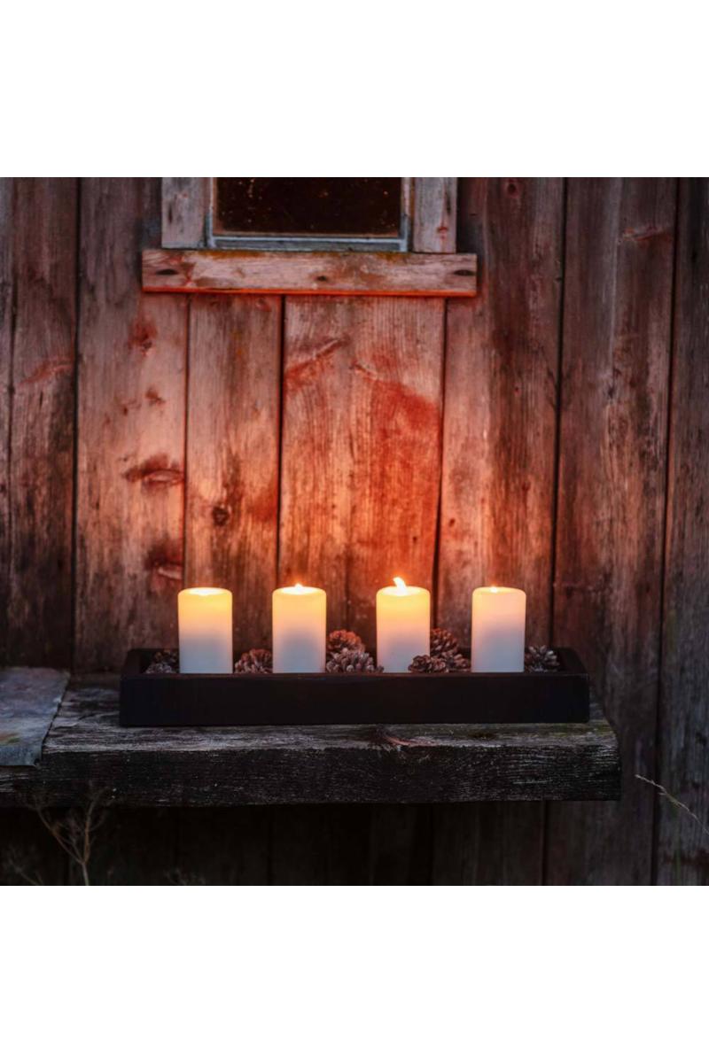 Avlangt fat i resirkulert, sortbeiset tre med rustikt utseende.
