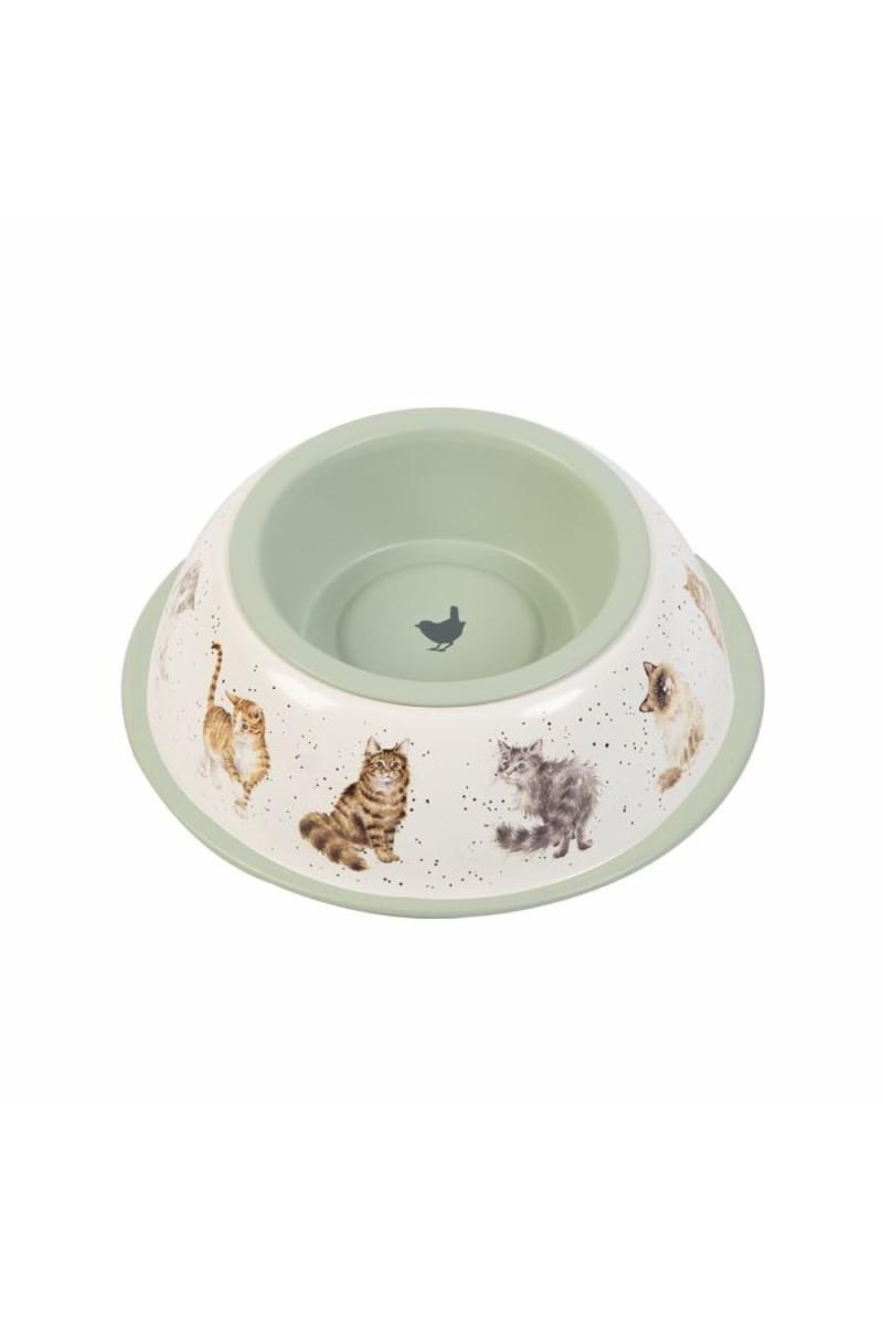Denne skålen er perfekt for mat eller vann, og er en godbit for enhver katt. Med våre favorittkatteillustrasjoner rundt kanten, inkluderer den en avtakbar innerskål i rustfritt stål som tåler oppvaskmaskin for enkel rengjøring. Denne skålen er vakker og praktisk med en gummilist på bunnen for å stoppe bevegelse. 200 mm x 200 mm x 55 mm. Innerskålens størrelse: 130 mm diameter. 40 mm høyde. Ytterkanten kan tørkes av.