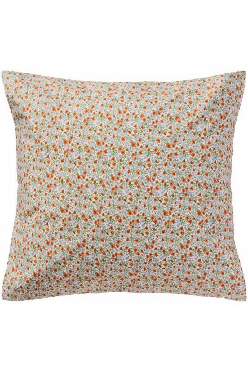 Putetrekk m/lyseblå og rustfargede blomster