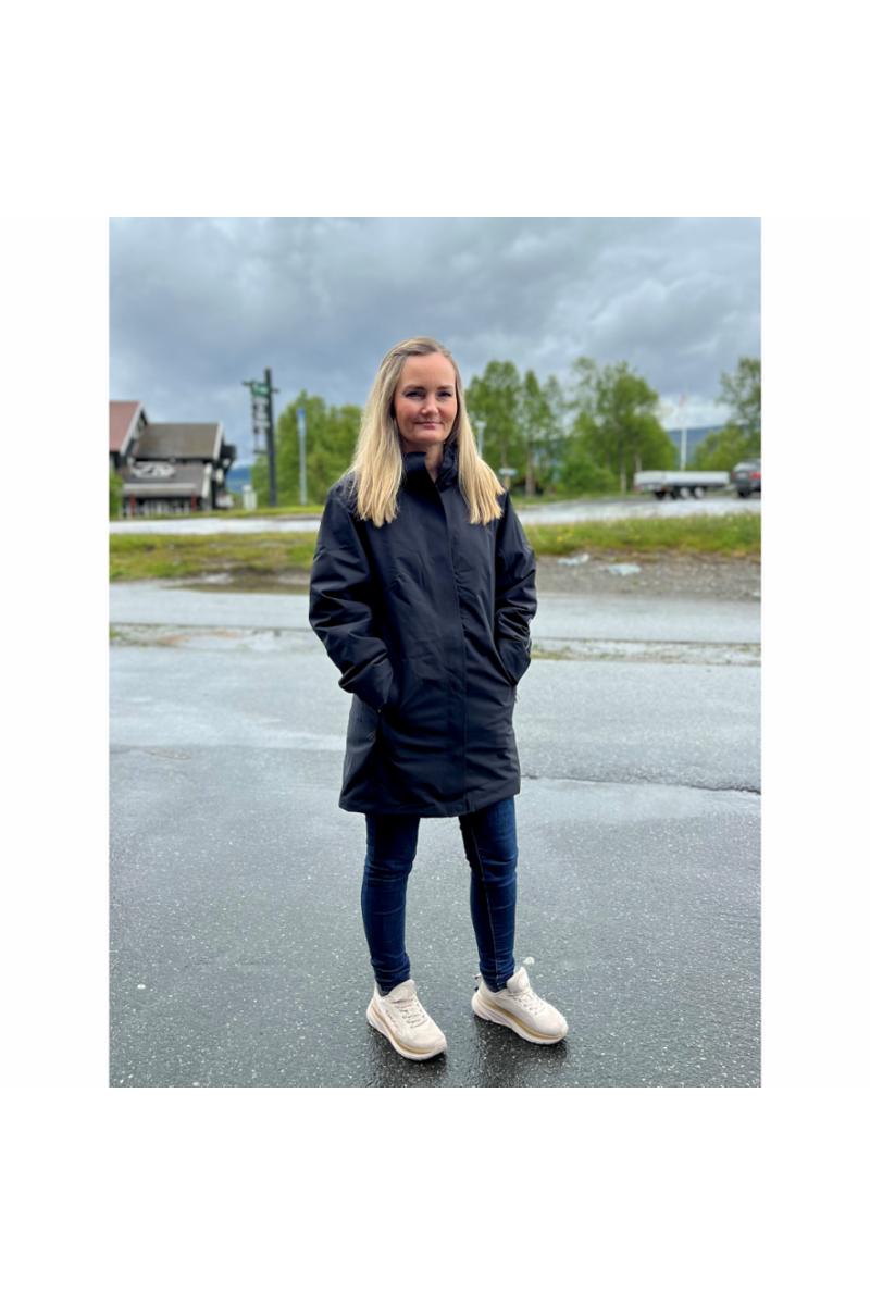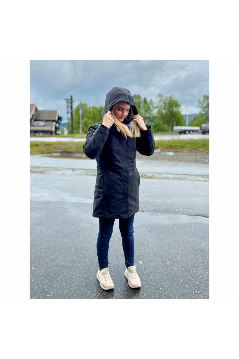 Regnfrakk m/fór lang Svart XL dame