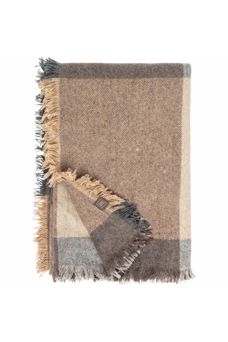 Beige ruter. 120x200cm. Resirkulert ull.