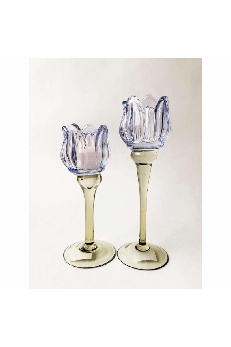 Lysglass blomst 18,5cm blå