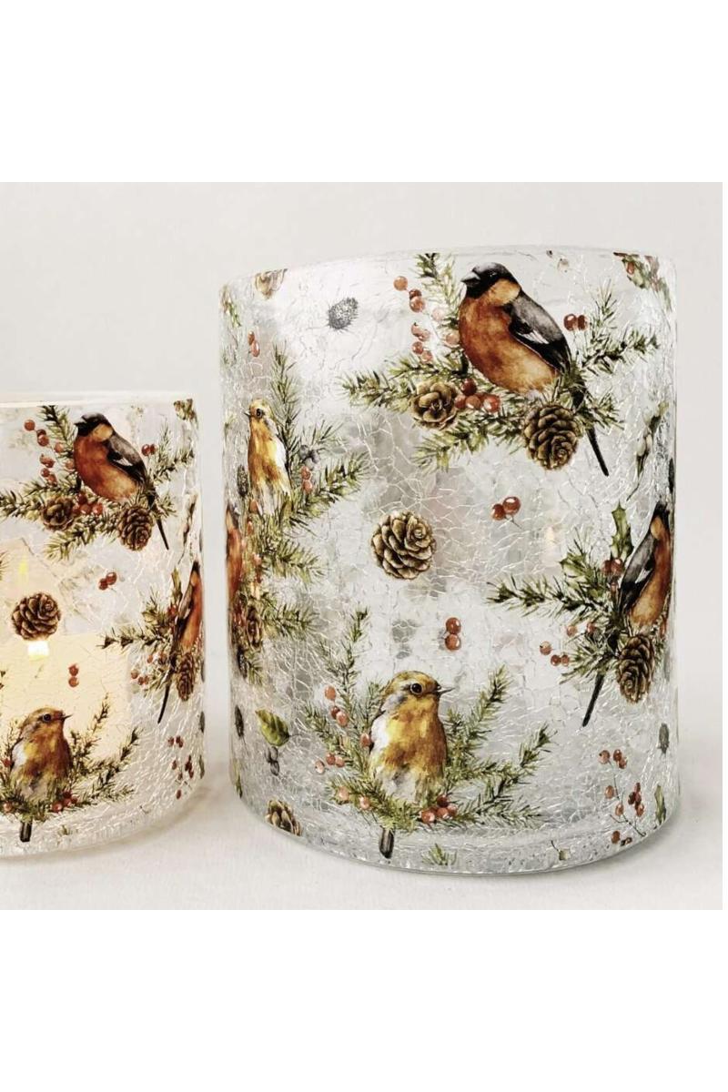 Lysglass krakelert dompapp/rødstrupe 11,5×13 cm