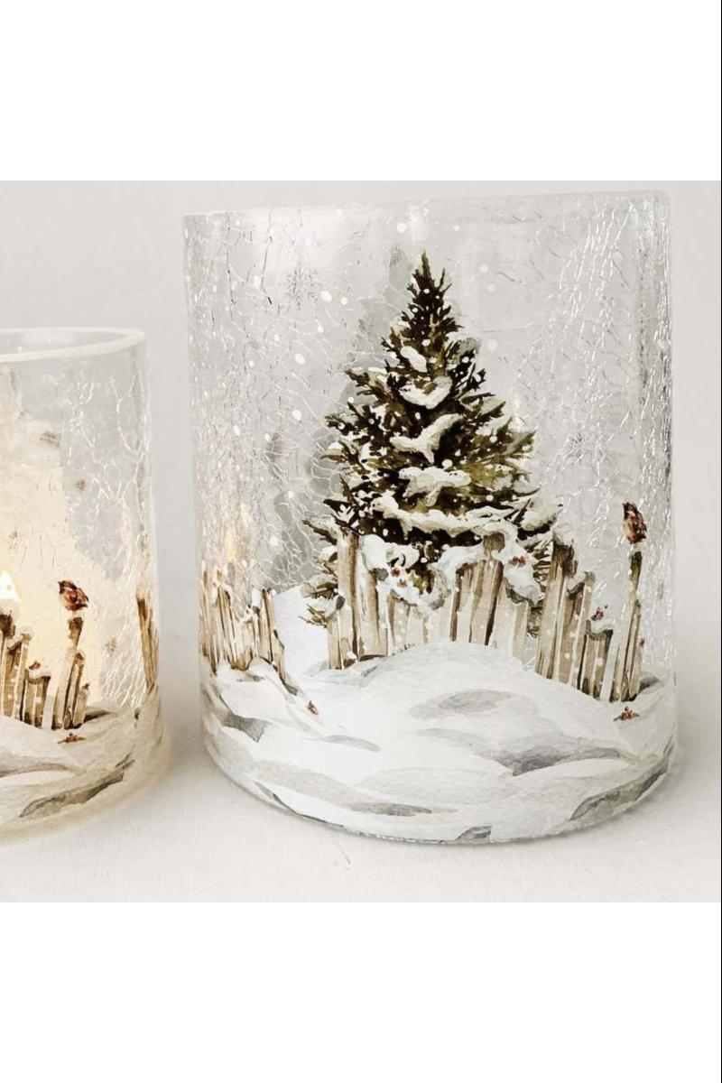 Lysglass krakelert nostalgi vinter 11,5×13 cm