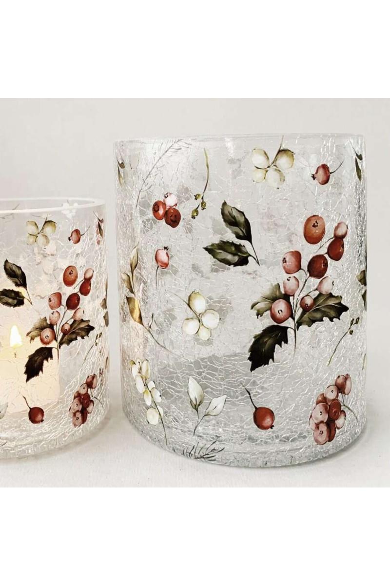 Lysglass krakelert røde bær 11,5×13 cm