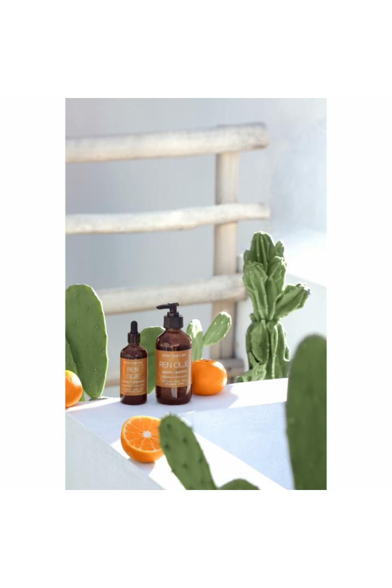 Denne oljen er tilsatt eterisk olje av appelsin og grapefrukt og har en søt sitrusduft.